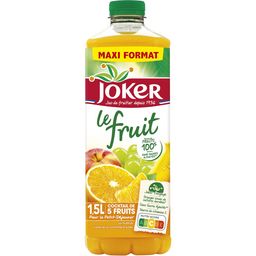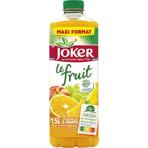 Jus multifruits à base de jus concentrés et purées. JOKER s'engage avec ce jus de fruits 100% teneur en fruits, sans conservateurs, sans colorants et sans sucres ajoutés. Un jus idéal pour votre petit déjeuner ! Composé simplement du sucre naturel des fruits, ce jus est majoritairement Nutri-Score C, comme la moyenne des jus et nectars.