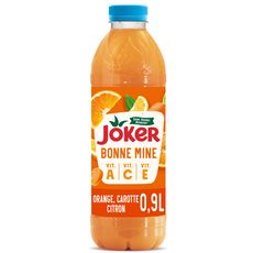 Jus de : orange (50%), mandarine; jus à base de concentrés de : pomme, carotte (10%), citron (2%); eau; vitamines : C et E; bêta-carotène.