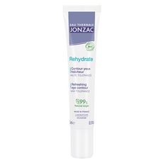 Enrichi en eau thermale de Jonzac, glycérine et acide hyaluronique d'origine naturelle, ce soin hydrate¹ intensément jusqu'à 24 h, apaise et protège durablement la zone sensible et délicate du contour de l'oeil. Convient aux porteurs de lentilles. Testé sous contrôle dermatologique et ophtalmologique.