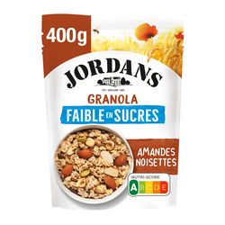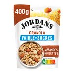 Jordans expert du Granola depuis 1972 vous offre une recette savoureuse à faible teneur en sucres ! Dégustez notre recette traditionnelle de flocons d'avoine complète et de d’orge grillés associés à des amandes, des noisettes, des graines de courge et des graines de tournesol. Sans colorant, conservateur ni arôme artificiel, ce granola est une source naturelle de nutriments (fibres, fer, magnésium, phosphore et zinc) !
