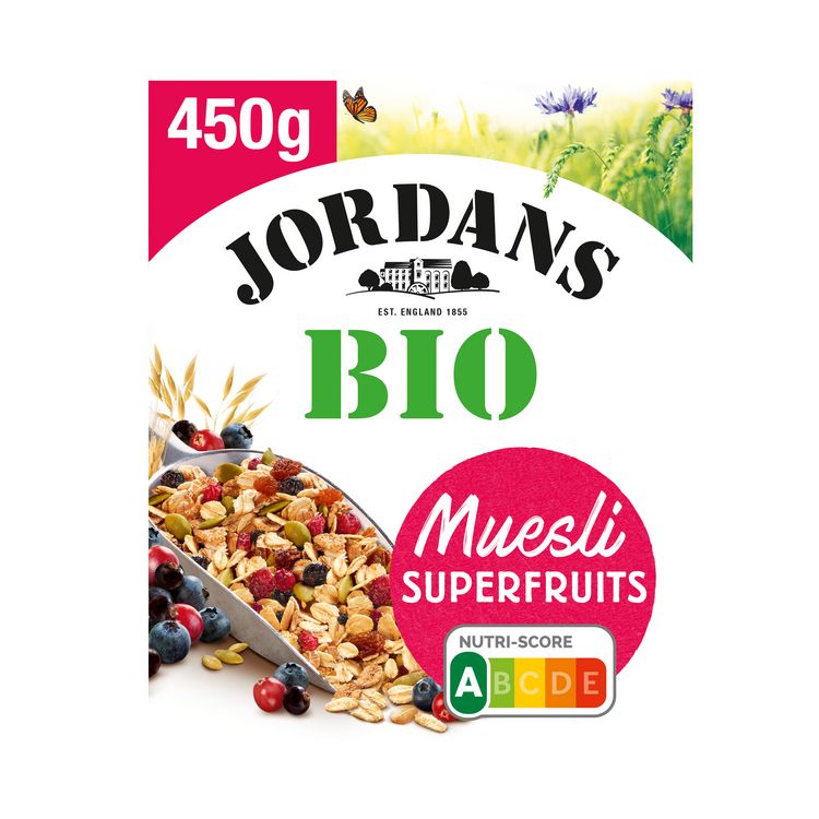 Une recette BIO et unique de muesli constituée de Superfruits ; Airelles, Cassis et Myrtilles associés à des graines de courge ainsi qu'à de savoureux raisins secs. Et sans sucre ajouté* ! (*contient des sucres naturellement présents.)