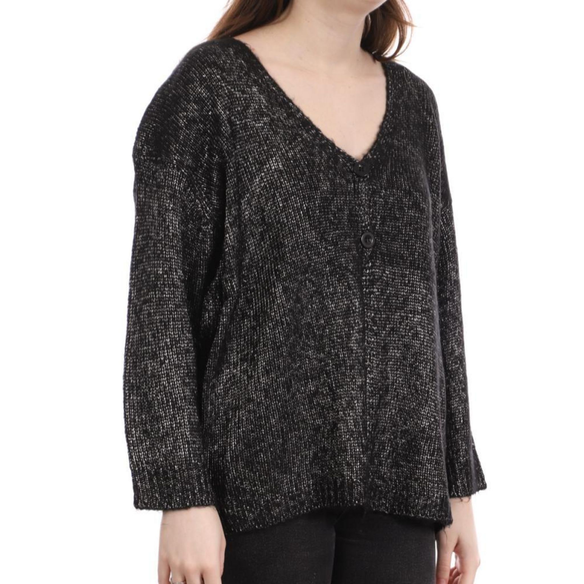 Optez pour le gilet femme de la marque Josephin Manches longues Col V Fermeture 2 boutons Coloris : Noir chiné Maille Composition : 56% polyester , 44% acrylique