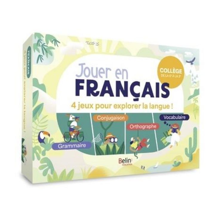 Pourquoi jouer en alte avec notre coffret ? - Les jeux en alte permettent l'acquisition de savoirs et de compétences par les élèves de manière ludique. - Ils créent une émulation stimulante au sein de la alte. - Ils dédramatisent les exercices de grammaire : les élèves sont plus motivés et reprennent confiance en eux. Comment utiliser le coffret Jouer en français ? - Le coffret Jouer en français s'utilise comme un outil de révision et complète les leçons et exercices d'étude de la langue plus altiques. - Les élèves travaillent en se regroupant en îlots autour de chaque jeu. - Différents niveaux de difficultés et variantes sont proposés dans le livret pédagogique pour s'adapter à toutes les altes de la 6e à la 3e. Le coffret contient quatre jeux permettant de réviser toutes les notions du programme d'étude de la langue de la 6e à la 3e. - Le jeu de l'oie Pour gagner ce périple grammatical, les élèves avancent de case en case en répondant à un maximum de questions de grammaire, de conjugaison ou d'orthographe. - C'est radical ! Un jeu de rapidité pour former des mots et enrichir son vocabulaire. - Triomots Natures & Triomots Fonctions Deux jeux pour réviser le fonctionnement de la phrase et les altes de mots. Le coffret contient : - un livret pédagogique avec les corrigés , - un plateau de jeu , - un dé, six pions et un sablier , - 80 cartes jeu de l'oie , - une roue avec 5 catégories , - 30 cartes radical , - 40 cartes Triomots Fonctions , - 40 cartes Triomots Natures.