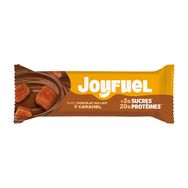 Barre bi-couche de chocolat au lait et de fondant goût caramel, riche en protéines, avec édulcorants, et enrobée de chocolat au lait avec édulcorant et billettes croustillantes.