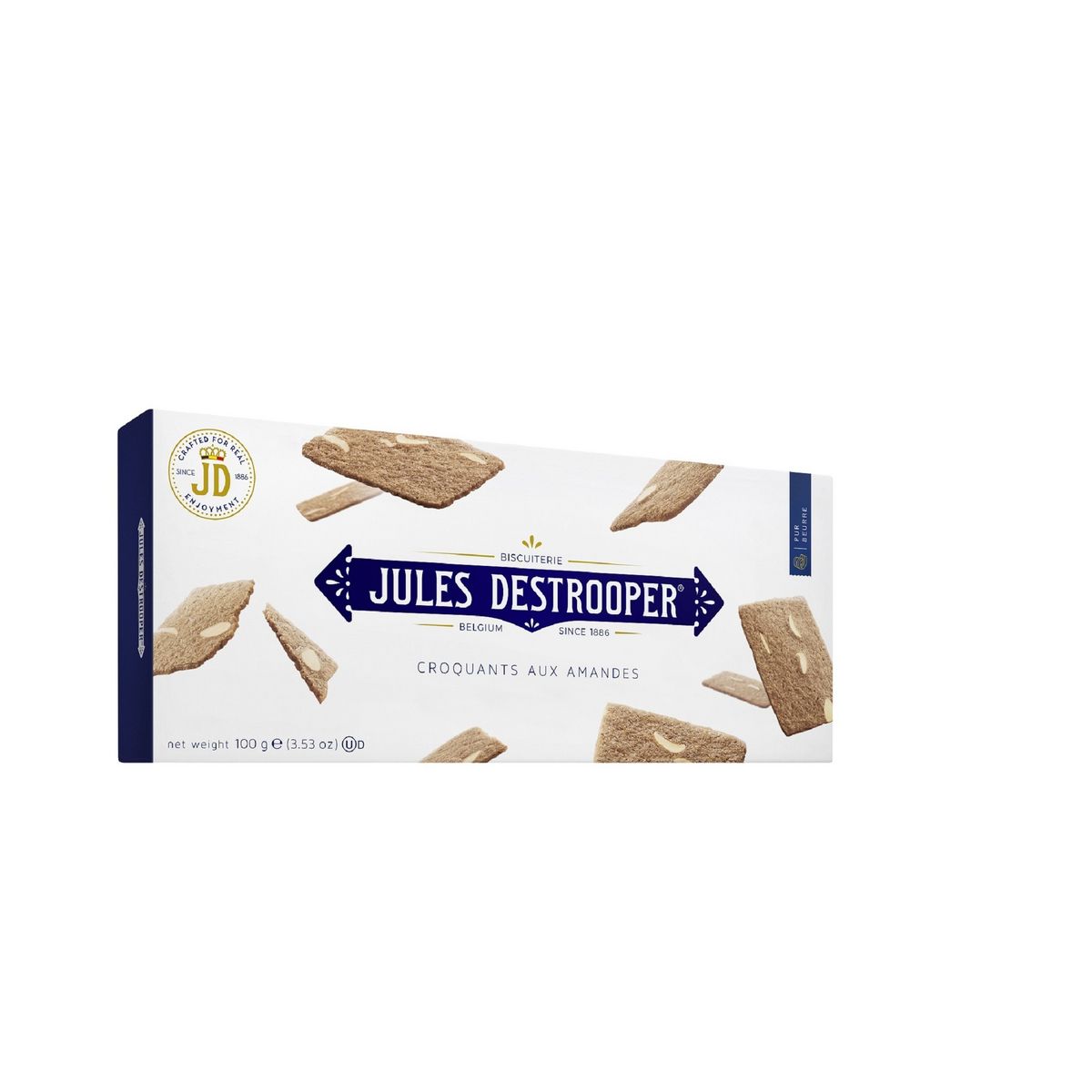 Farine de FROMENT, cassonade (FR: vergeoise), beurre (13%) (LAIT), AMANDES (10%), sel de mer, poudre à lever: carbonate acide de sodium.