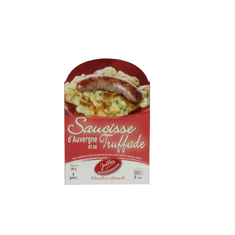 Ingrédients : Pomme de terre 50.6% TOME FRAÎCHE 25.3% saucisse de porc 21% huile de tournesol CRÈME sel, épices, aromates.