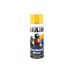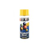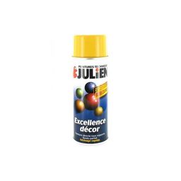 Lapeinture aérosol Julien jaune signal Excellence décor est une peinture de très haute qualité, riche en résine et pigments. Sa formule gélifiée réduit les coulures. Elle est idéale pour obtenir un fini impeccable et un résultat rapide quand l'utilisation d'un pinceau est difficile ou impossible. Elle s'applique en intérieur comme en extérieur sur toutes surfaces : bois, osier, métal, verre, acier, aluminium, céramique, pierre, marbre, papier et tous les plastiques rigides (ABS, PVC).