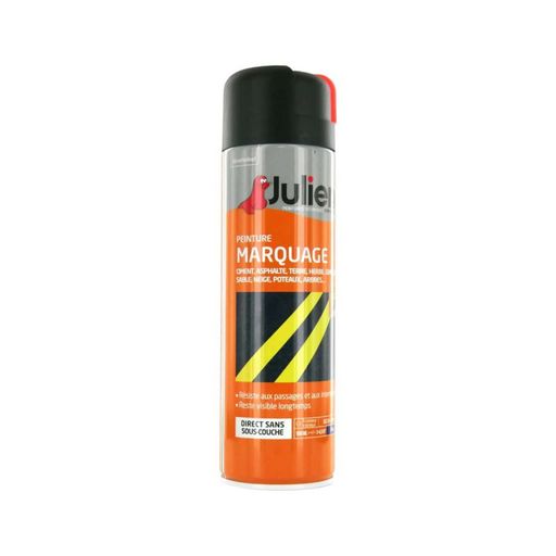 Lapeinture aérosol Julien marquage a été spécialement élaborée pour marquer, tracer et repérer. Principalement utilisée dans les travaux publics, le bâtiment, l'industrie et le marquage forestier, cette peinture aérosol s'applique sur tous les supports : terre, herbe, gravillons, sable, neige, arbres. La peinture Julien marquage sèche rapidement même sur fonds humides et résiste aux passages ainsi qu'aux intempéries.