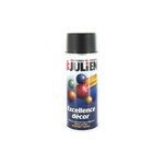 Lapeinture aérosol Julien noir satiné Excellence décor est une peinture de très haute qualité, riche en résine et pigments. Sa formule gélifiée réduit les coulures. Elle est idéale pour obtenir un fini impeccable et un résultat rapide quand l'utilisation d'un pinceau est difficile ou impossible. Elle s'applique en intérieur comme en extérieur sur toutes surfaces : bois, osier, métal, verre, acier, aluminium, céramique, pierre, marbre, papier et tous les plastiques rigides (ABS, PVC).