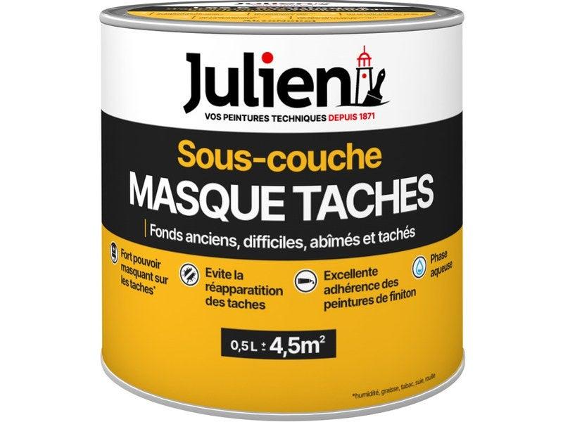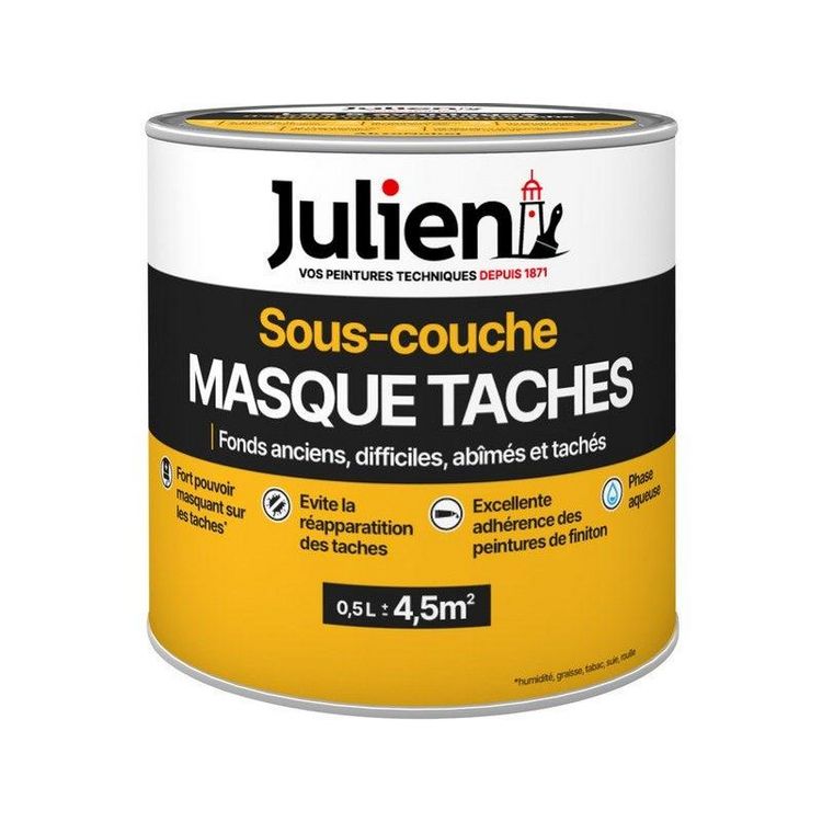 Qualité de l'air intérieur : A+Marque du produit : JULIENPour pièces humides : NonTemps de séchage complet (en h) : 24Rendement par pot (en m²) : 5 m²Aspect : MatCouleur : BlancContenance (en l) : 0.5Temps de séchage complet (en h) : 24Nettoyage des outils : EauDestination : IntérieurSupport : Plâtr