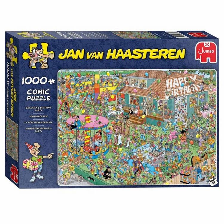 Plongez dans l'ambiance festive du puzzle Jan van Haasteren Kindergeburtstagsparty où chaque détail raconte une histoire. Cette création de 1000 pièces capture l'effervescence d'une fête d'enfant pleine de rebondissements comiques et de personnages hauts en couleur.