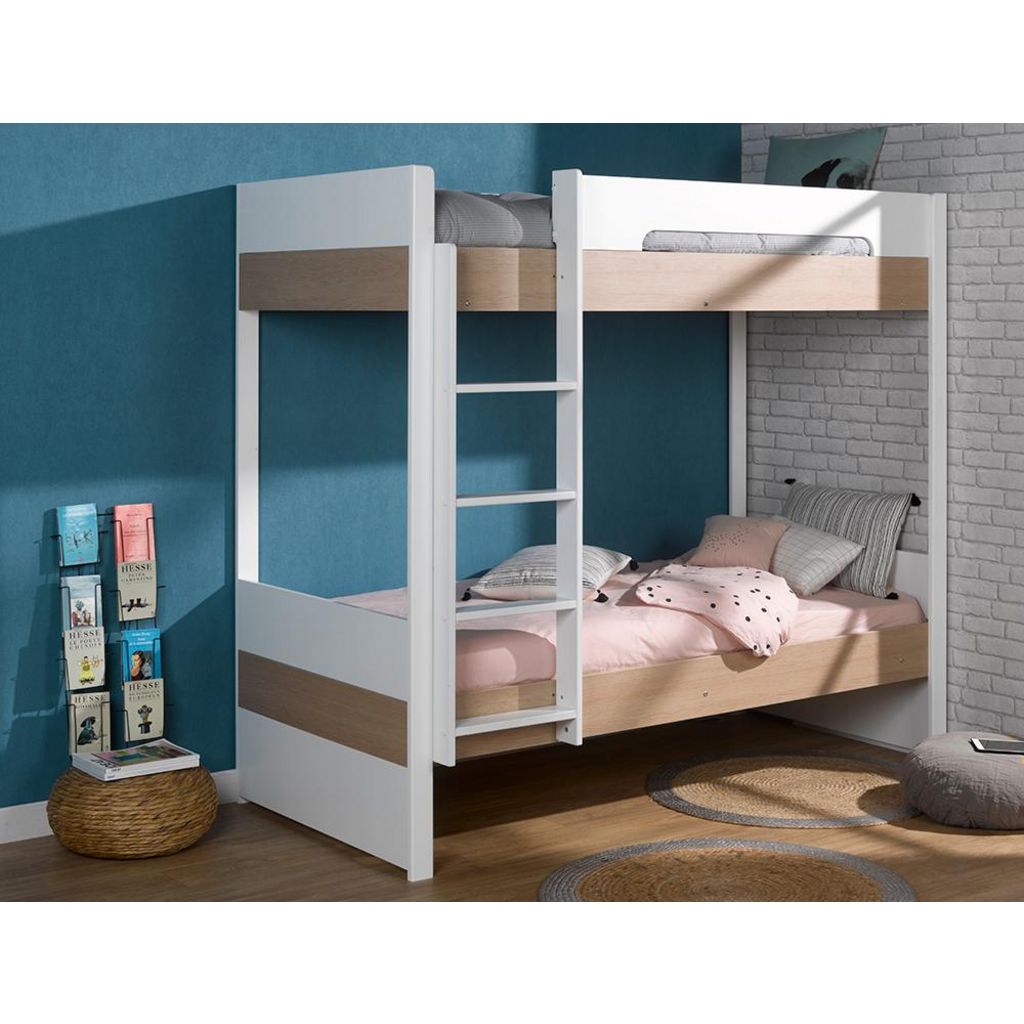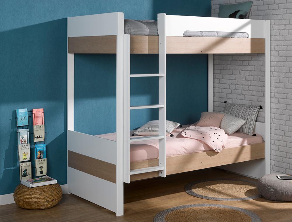 Le lit superposé Olga avec ses sommiers inclus, garantit confort et stabilité. Qualitatif, ce double couchage au style scandinave apporte un vrai plus avec sa fabrication française et l'association du blanc et bois très tendance.