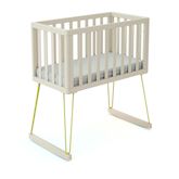 Le berceau en bois est muni d'un matelas blanc 40 x 80 cm avec une densité de 30 kg/m³ pour un soutien confortable. Il est déhoussable et lavable en machine à 60 °C pour un environnement sain et hygiénique pour bébé.