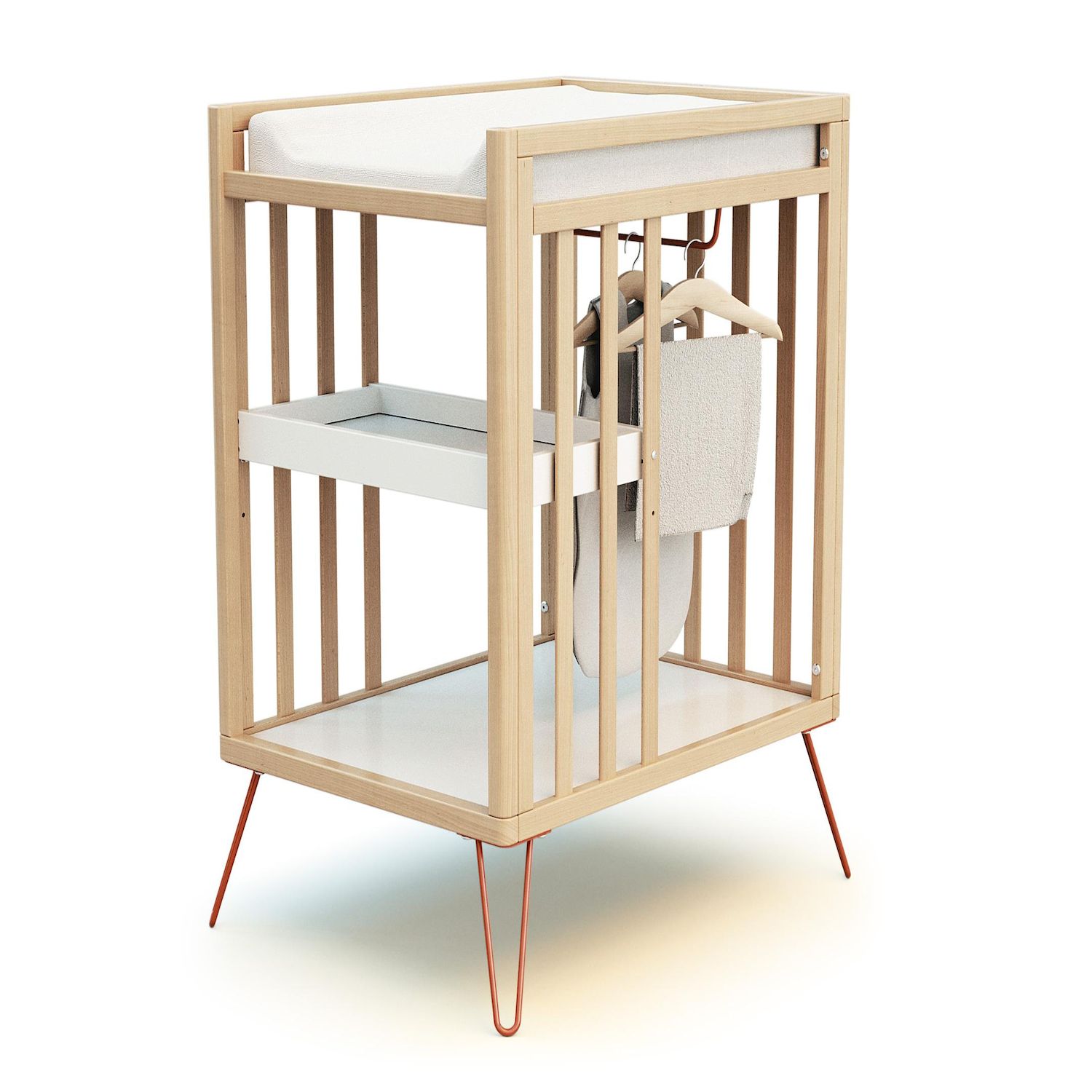 Conçue pour rendre la toilette de bébé facile, elle est équipée d'un bac, d'une étagère et d'une penderie. Elle est toute prêtre pour le rangement des affaires de bébé.