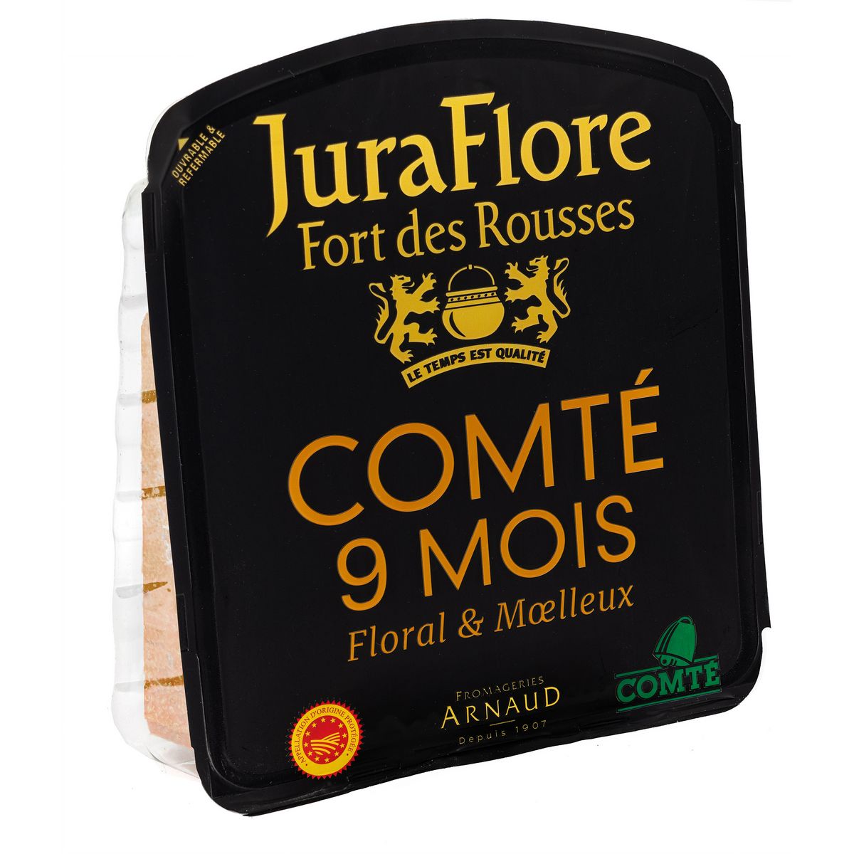 Les Comtés JURAFLORE 9 mois sont fabriqués dans le strict respect de la tradition dans des petites fromageries en Franche-Comté appelées fruitières . Ils sont ensuite affinés dans nos caves de Poligny, Capitale du Comté, sous la surveillance experte de nos Maîtres Affineurs. Les Comtés JURAFLORE sont régulièrement primés pour leurs qualités exceptionnelles et font ainsi partie des fromages les plus distingués de France.