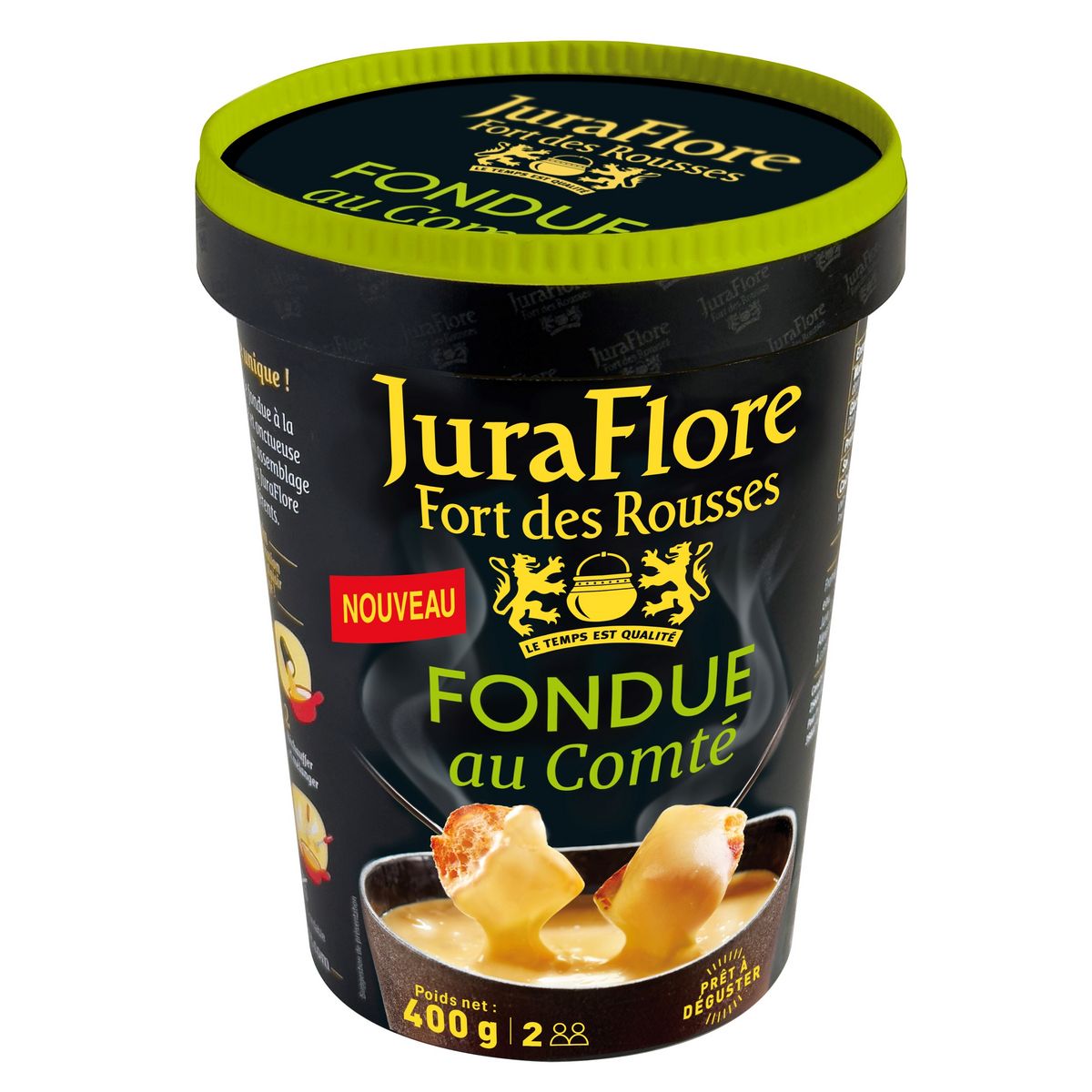 La Fondue la plus qualitative du marché avec sa recette au Comté JURAFLORE Un produit pratique et prêt à l'emploi.