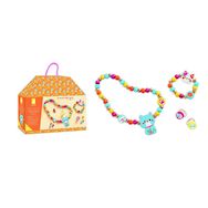 Un collier, un bracelet et deux bagues sur le thème des chatons, grâce à tous les matériaux inclus : 2 perles en bois sculptées et imprimées, 3 perles rondes en bois imprimées, 33 perles rondes colorées, 22 perles dorées, 2 bagues avec des perles plates en bois imprimées, une planche de 8 strass, un fil élastique et un livret d'instructions et de modèles. La boîte se transforme en un adorable petit sac à main pour ranger bijoux et autres petits trésors. Cette activité dure environ 17 minutes et contribue au développement de la créativité et de la motricité fine. Elle est idéale pour les enfants à partir de 4 ans.