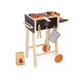 Sentez-vous la bonne odeur de saucisses grillées ? Les repas s'annoncent festifs avec ce magnifique jouet barbecue en bois, plus vrai que nature ! Les enfants, à vos tabliers, le chef c'est vous ! Rendez-vous incontournables de nos étés, les soirées grillades vont maintenant pouvoir se tenir toute l'année et seront orchestrées par nos petits cuistots, qui seront ravis de prendre la place de leurs parents à la cuisson. Grâce à ce Barbecue mobile sur pieds, les enfants à partir de 3 ans pourront s'amuser à cuisiner pour leurs copains. Au menu, de nombreux accessoires pour développer l'imagination culinaire : 57 en tout ! 35 ingrédients gourmands (2 saucisses, 1 steak, 4 tranches de tomate, 14 tranches de poivron en feutrine, 4 crevettes, 4 tranches d'aubergine, 4 tranches d'oignon, 1 pot de sauce piquante et 1 pot de moutarde). Bien sûr, les outils indispensables du parfait cuisinier sont aussi de la partie : 2 pics à brochettes, 1 couteau, 1 spatule, 1 pince et 1 manique en tissu pour tout saisir sans se bruler ! Amusant, le charbon est matérialisé par 15 morceaux de feutrine de différentes couleurs. Ce jouet d'imitation sur le thème de la cuisine, tout à fait original se déplace facilement grâce à ses 2 roues silencieuses et est très stable. Son style nature avec du bois et ses tons brun/orangé en font également un jeu très joli et déco. Ce jouet est parfait pour développer la motricité globale et la créativité. Jouet d'imitation cuisine composé de bois certifié FSC?.
