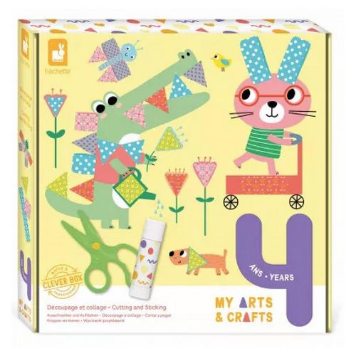 Découper et coller, c'est super amusant et ça fait travailler la motricité fine des enfants dès 4 ans ! Dans ce coffret créatif, il y a tout le nécessaire pour réaliser 4 tableaux à décorer avec du papier à motifs que les petits devront couper puis coller au bon endroit ! Malin la Clever Box, la boite se transforme en chevalet pour exposer les belles créations. Une paire de ciseaux adaptés aux petits (ils ne coupent que le papier) et de 5 feuilles de papier à motifs permettent aux minis artistes de laisser parler leur créativité. Cette activité est très facile : il suffit de découper les formes pré-dessinées des feuilles de papier et de les disposer au bon endroit à l'aide du bâton de colle fourni. Les enfants pourront suivre le livret d'instructions inclus. Il faut environ 1h30 pour finaliser les 4 tableaux. Ce coffret créatif fait partie de la gamme My Arts et Crafts qui présente des animaux tout mignons aux couleurs pastel et qui propose aux plus petits leurs premières activités de création.