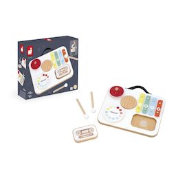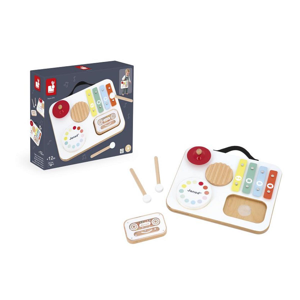 Éveillez la curiosité musicale de votre enfant avec cette charmante table musicale en bois de Janod ! Conçue pour les tout-petits, elle propose cinq activités : un grattoir, un tambour doux, une cymbale rouge, un xylophone multicolore et un hochet à ruban et perles. Très pratique, elle se range facilement grâce à son plateau supérieur et sa poignée permet de l'emporter partout. Avec ses couleurs vives et ses formes amusantes, elle stimule les sens, la coordination et l'amour de la musique. Belle, robuste et parfaitement adaptée aux petites mains. Ce jouet musical en bois certifié FSC convient aux enfants de 12 mois et plus.