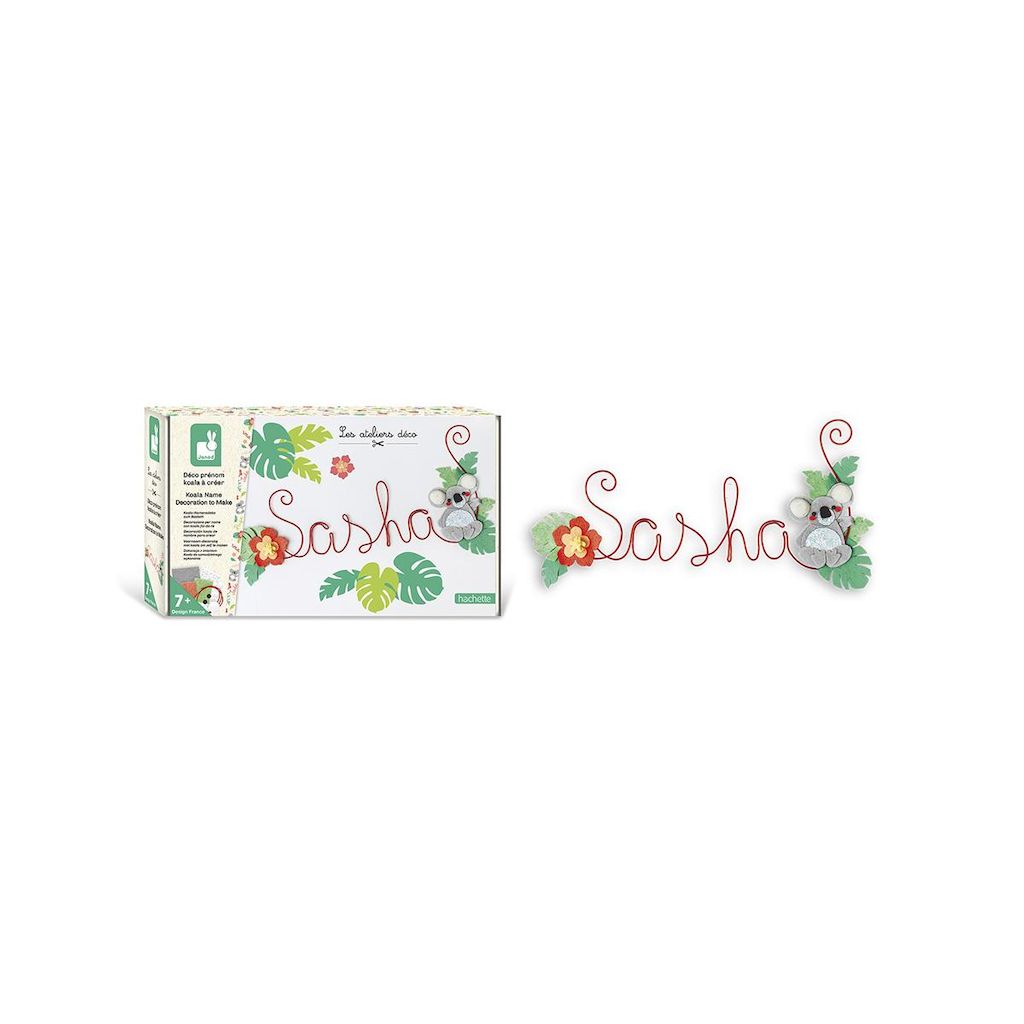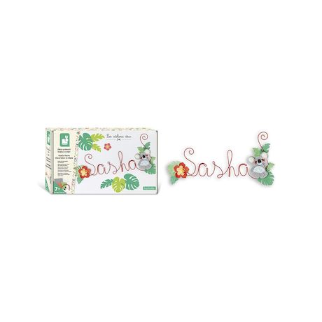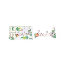 Une jolie décoration murale à créer et à personnaliser avec son prénom ! Ce kit créatif permet de réaliser une décoration murale en fil d'aluminium et feutrine sur un thème tropical. Le poster recto verso sert de modèle à suivre pour former toutes les lettres de son prénom, 10 au maximum, en minuscules et en majuscules. Il faut ensuite assembler les éléments pré-découpés en feutrine en suivant le livret pas à pas pour créer le décor autour du prénom. Et voici une très belle décoration à suspendre au mur ou sur sa porte ! Activité créative qui permet de développer la motricité fine et la créativité.