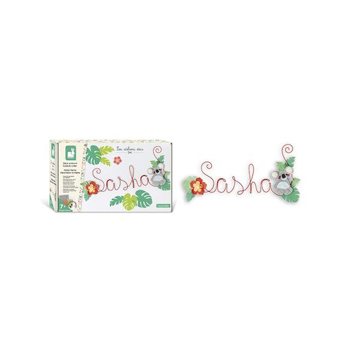 Une jolie décoration murale à créer et à personnaliser avec son prénom ! Ce kit créatif permet de réaliser une décoration murale en fil d'aluminium et feutrine sur un thème tropical. Le poster recto verso sert de modèle à suivre pour former toutes les lettres de son prénom, 10 au maximum, en minuscu