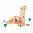 C'est la course à Dino-Ville, nos dinosaures roulants doivent tous passer au garage pour une petite révision ! Un dino qui s'entretient c'est un dino qui va loin ! Et avec notre beau garage en forme de diplodocus, il est évident que tout le monde sera satisfait du travail ! Prêt pour la visite ? Ce grand garage en bois de 50 cm de haut est équipé d'un ascenseur permettant un accès direct au premier et au deuxième étage, jusqu'à la tête de notre joli dino ! Pour monter, il suffit de placer les véhicules sur la plateforme et de faire tourner les gros yeux ronds pour actionner l'ascenseur. Et pour redescendre, pourquoi ne pas profiter de la rampe spectaculaire longeant le long cou et le dos de notre animal accueillant ? Ce garage à voitures est idéal pour les enfants de 2 ans et plus. Il inclut 4 dinos roulants en bois et 2 cactus pour parfaire le décor ! Le petit ptéranodon possède sa plateforme privée pour venir se poser directement sur le toit du garage ! Ce jeu est idéal pour développer l'imagination et la motricité ! Il est fabriqué en bois FSC.