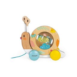 Un escargot rigolo à promener dans des tons très doux et très actuels. La coquille tourne lorsqu'on le promène et s'enlève pour révéler un tambourin et un petit xylophone ! Les antennes de l'escargot sont également amovibles et forment les baguettes. Pour éveiller votre enfant à la musique de façon