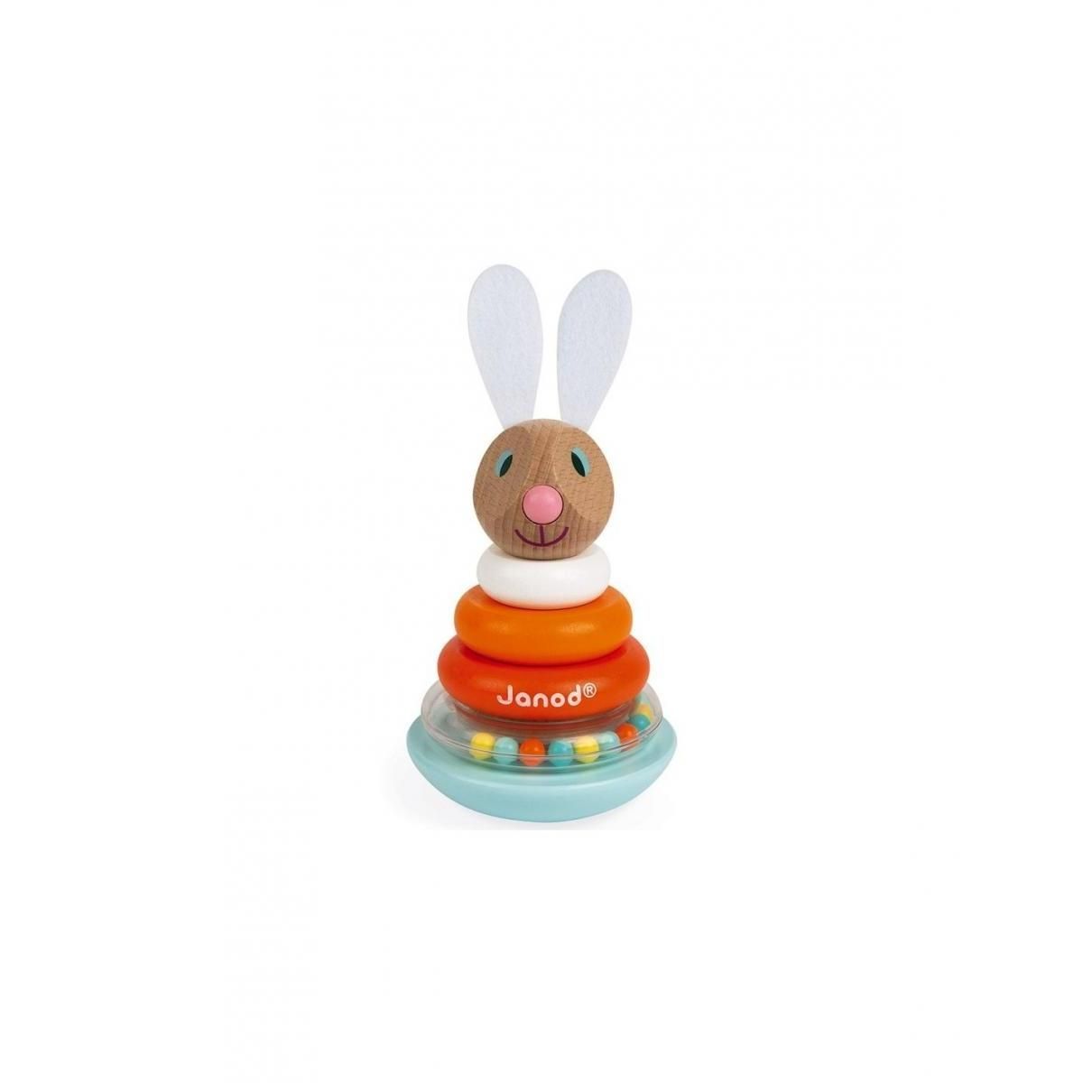 Découvrez l'empilable culbuto lapin de Janod, un jouet d'éveil original avec un lapin avec les oreilles en feutrine. Un cadeau ludique pour les enfants de 1 à 3 ans qui fait référence à l'emblême de la marque. Votre enfant s'amusera à empiler l'anneau en plastique avec des billes, puis les 3 anneaux