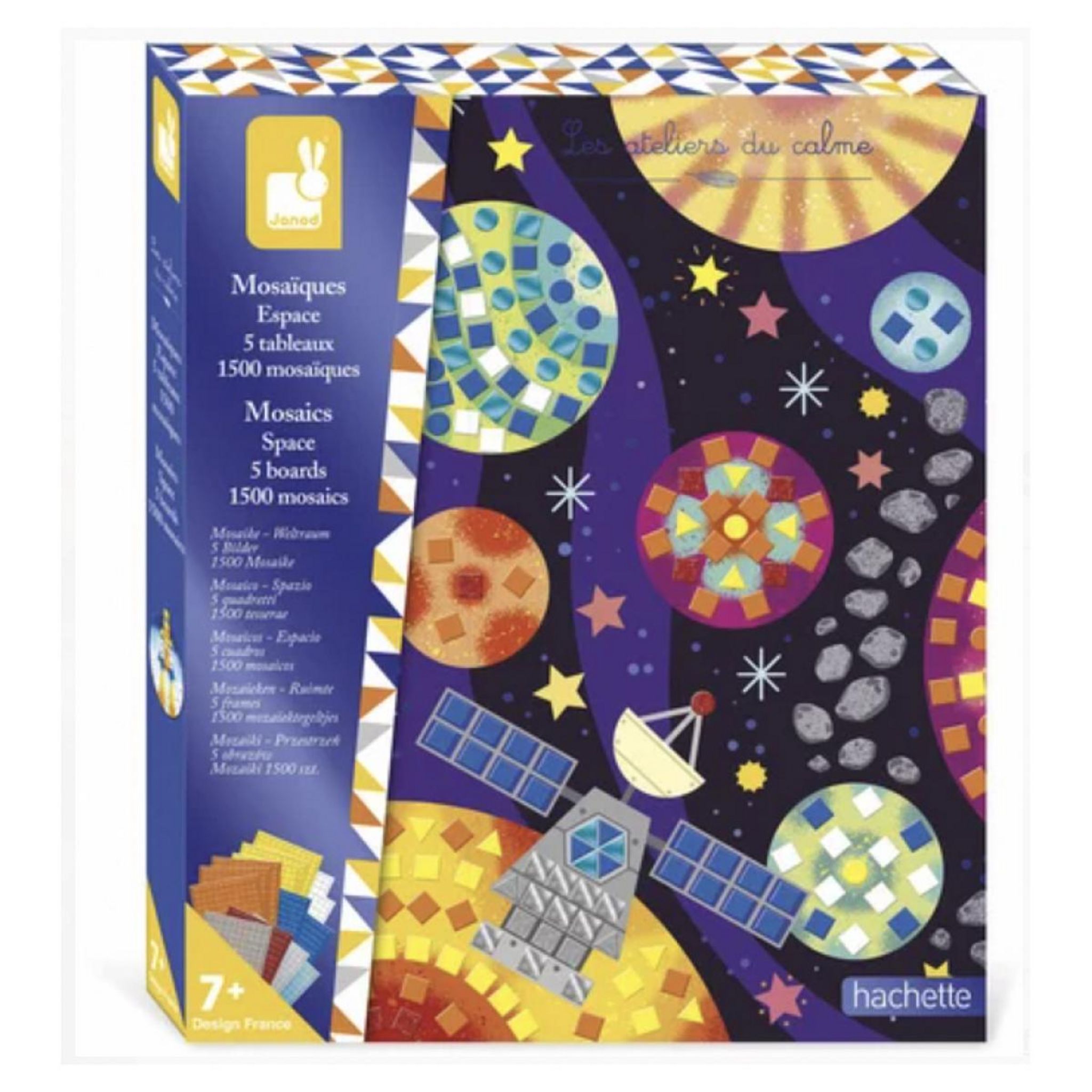 Coffret janod sur l'espace, Recréer de superbes mosaiques sur le themes de l'espace avec ce coffret haut en couleurs