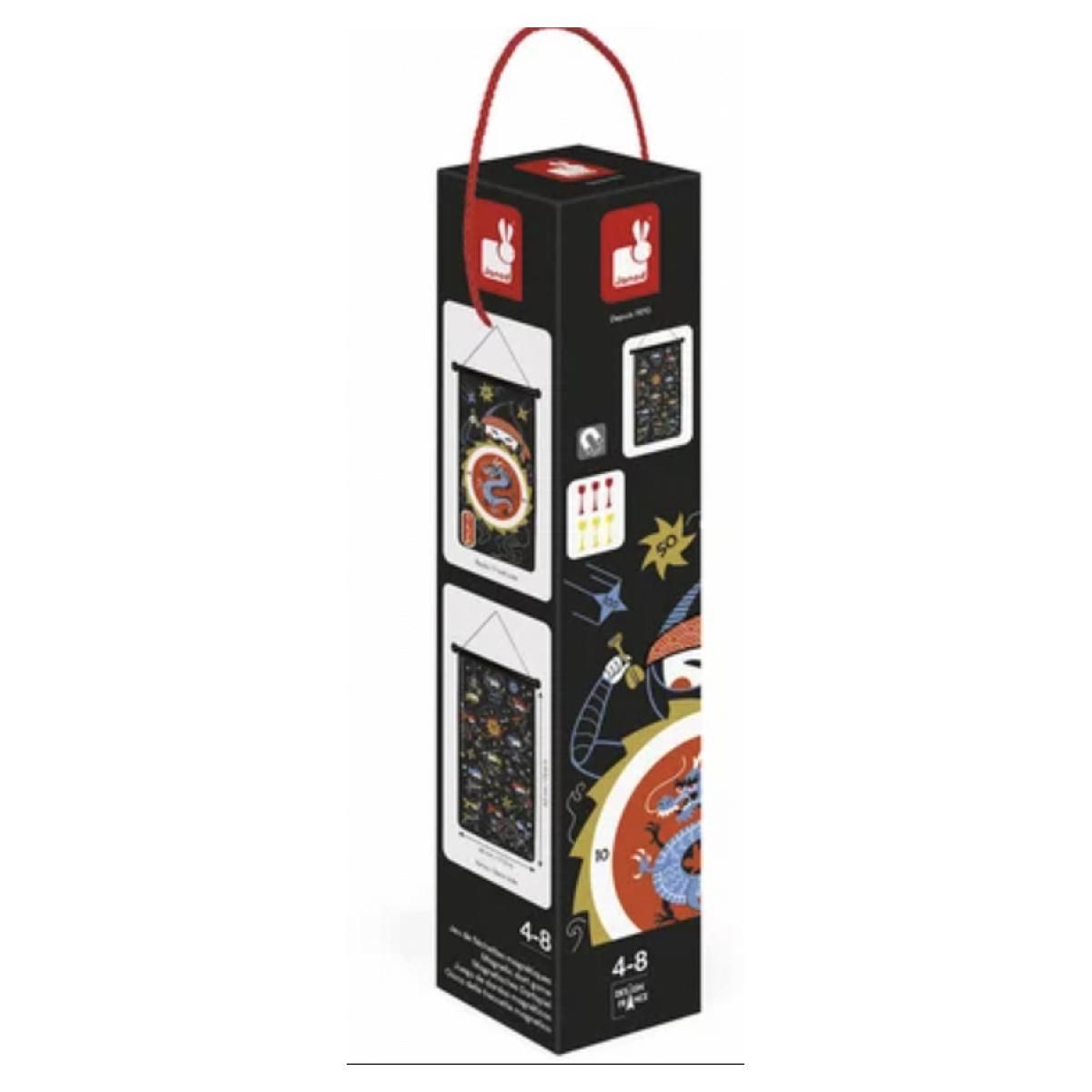 Une cible magnétique qui s'accroche facilement pour défier ses amis sans danger avec 6 fléchettes à aimants ! Ce superbe jeu d'adresse permet de développer la concentration et la patience, au tour du joli thème des ninjas