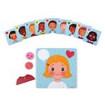 Un jeu pour découvrir les émotions, les sentiments, les humeurs pour mieux les apprivoiser ou les évacuer. Le coffret contient un plateau en bois imprimé et 27 magnets permettant de reproduire 10 émotions : 10 visages, 10 smileys, 7 habits et d'autres éléments. Vous trouverez également 20 cartes rec