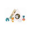 Adorable boite forme qui change des altiques avec ces jolis animaux. Il faudra leur trouver la bonne place tout en expérimentant cette forme pyramidale. Un jeu de découverte des sens et de la notion de volume dans l'espace. Dimensions: 15,2 x 18,2 x 16 cm Dès 1 an