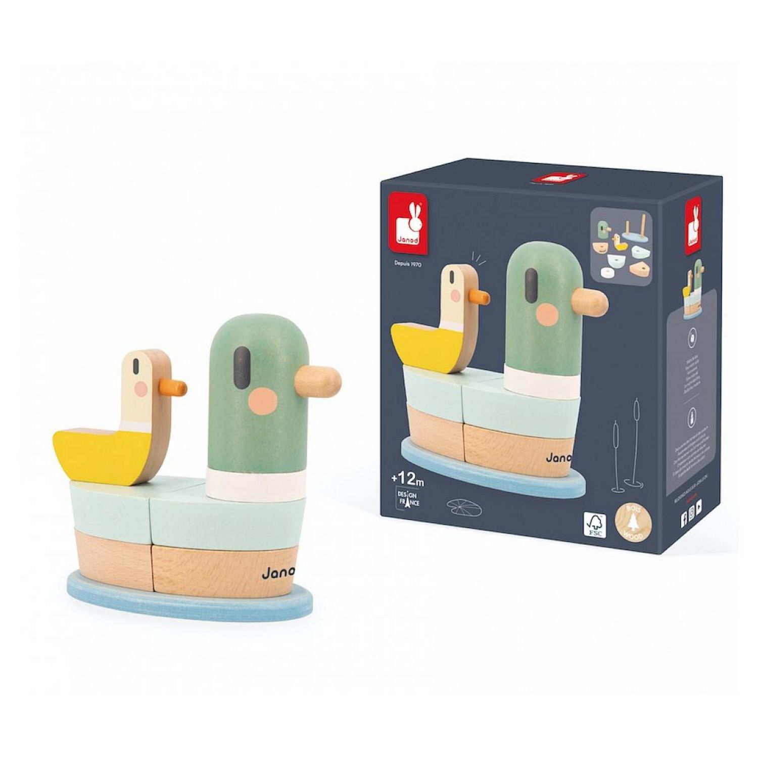 Rejoignez le canard et son caneton avec ce jouet empilable en bois, parfait pour les bébés dès 12 mois. Ce jeu éducatif contient 7 pièces à empiler sur 2 tiges en bois, offrant un jeu sécurisé. En jouant, votre enfant développera sa motricité fine, sa coordination œil-main et sa créativité. Les couleurs et formes variées stimulent également son apprentissage. Idéal pour les histoires imaginaires, ce jouet fait partie de notre collection Sweet Cocoon et est fabriqué en bois certifié FSC. Offrez à votre enfant des heures de jeu enrichissant.