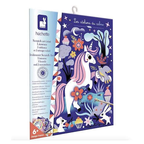 Avec ce kit créatif votre enfant réalise de belles décorations sur le thème des licornes pour ensuite les accrocher dans sa chambre. Grâce à la technique du Scratch Art, l'activité est accessible et amusante à réaliser pour les enfants dès 6 ans. Pour cela, rien de plus simple : il suffit de se muni