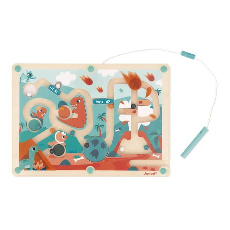 Attention aux boules de feu ! Les dinos vous réservent bien des surprises dans ce labyrinthe à billes magnétique ! On exerce sa motricité fine grâce à ce joli jeu d'adresse pour les enfants à partir de 2 ans. Le but du jeu ? Traverser le labyrinthe et apporter les 12 billes colorées dans la zone cor