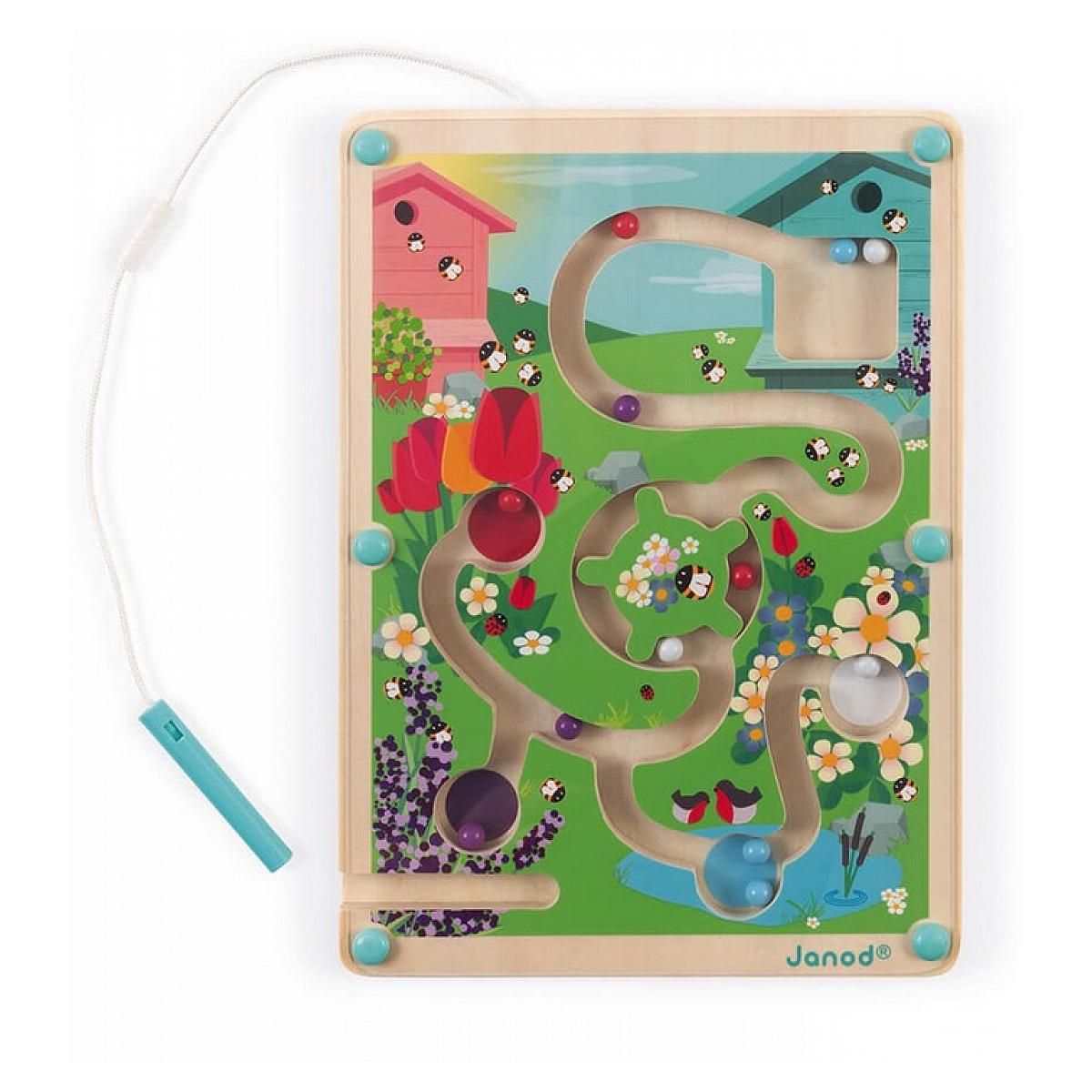 On exerce sa motricité fine grâce à ce joli jeu d'adresse pour les enfants à partir de 2 ans. Depuis la ruche, il faudra traverser le labyrinthe et apporter les 12 billes colorées dans la zone correspondante à l'aide du stylet magnétique ! Les billes bleues devront se retrouver à la mare, les rouges