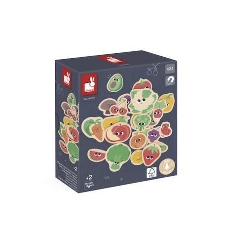 Et si on altait les fruits et légumes par saison ? Donnez un look gourmand à toutes les surfaces magnétiques avec ce set de 24 magnets en bois ! Destinés aux enfants à partir de 2 ans, ces magnets fruits et légumes trouvent leur place sur le réfrigérateur ou sur le tableau des petits, pour des créations au service du goût. Des expressions différentes, des découpes, et même une banane grincheuse font partie de ce lot d'aimants pour enfants. C'est l'occasion parfaite pour afficher quel fruit ou légume sera à l'honneur pour le repas de ce soir ! Les aimants sont de différentes tailles pour faciliter leur préhension. Idéals pour compléter un tableau magnétique, ces aimants fruits et légumes donnent vie aux histoires des petits qui stimulent ainsi leur imagination et leur vocabulaire. La manipulation des magnets est aussi un bon moyen de développer la motricité fine des enfants. Alors, une petite salade composée ? Magnets en bois FSC?. Dimensions 12 x 4,6 x 14,6 cm. Matière Bois (tilleul et contreplaqué)