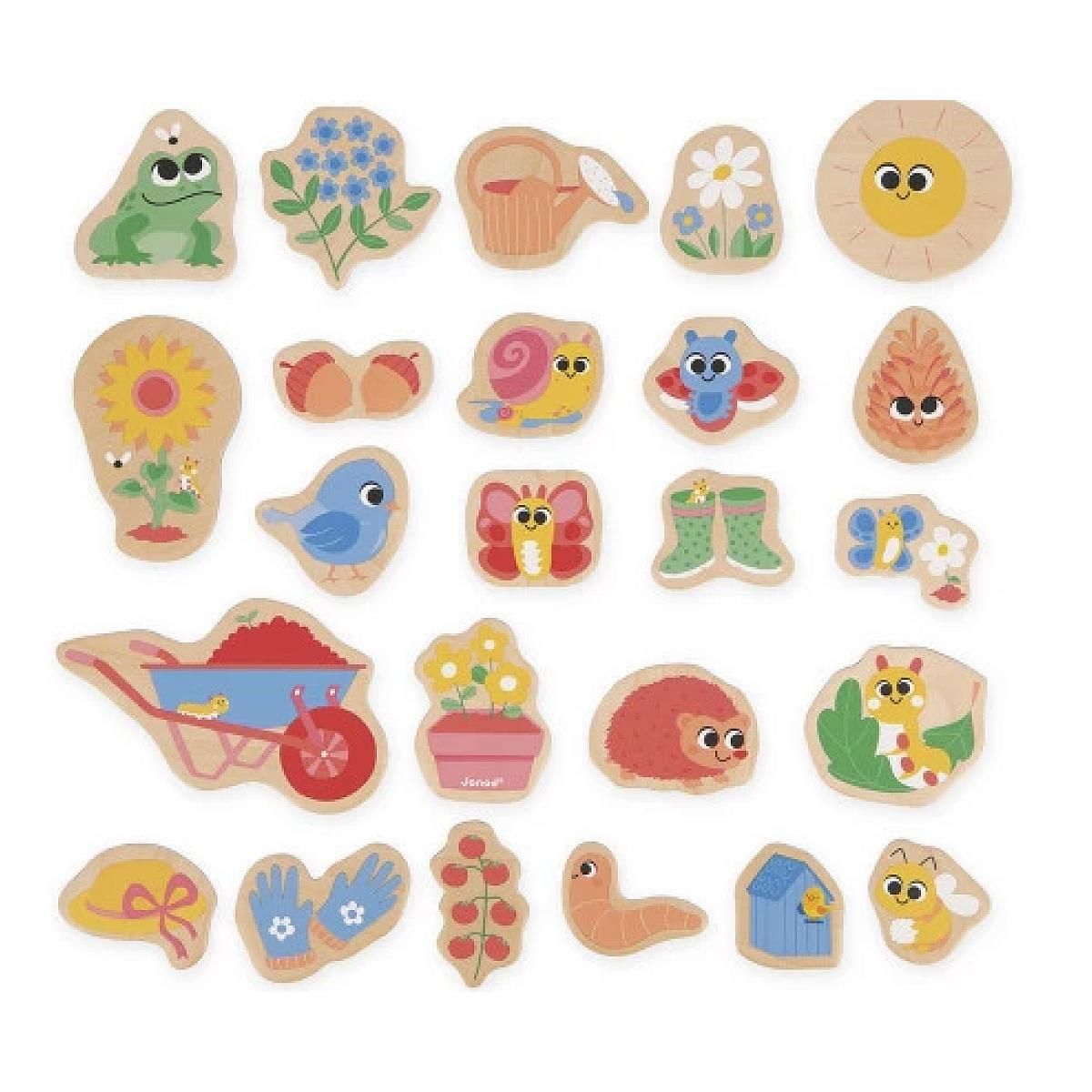 Dans mon jardin, il y a ? Donnez un look bucolique à toutes les surfaces magnétiques avec ce set de 24 magnets en bois ! Destinés aux enfants à partir de 2 ans, ces magnets jardin trouvent leur place sur le réfrigérateur ou sur le tableau des petits, pour de fantastiques découvertes dans la nature.