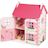 La maison de poupée en bois Mademoiselle est une maison en bois sur 3 étages décorée et meublée. Comprend 11 accessoires pour aménager sa maison: une armoire avec les portes qui s'ouvrent, un lit avec sa couverture, une coiffeuse, une baignoire, un canapé, une lampe, une table, 2 chaises et une cuis