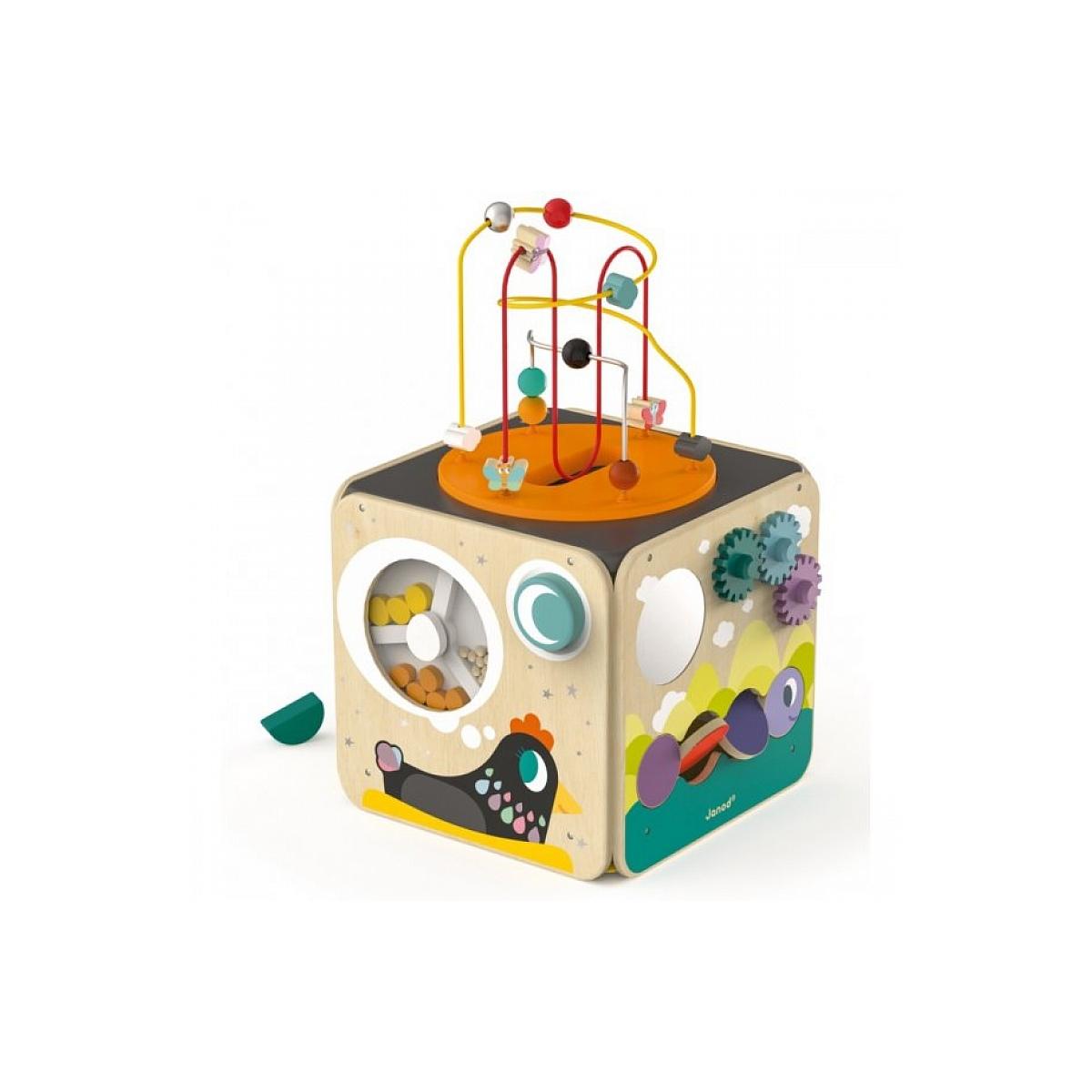 Découvrez le maxi looping multi activités de Janod, un superbe jouet en bois pour les enfants de 18 mois à 3 ans qui propose 8 activités d'éveil et sensorielles pour les enfants. Un cadeau parfait et très complet pour les grandes occasions. Vous allez aimer ses couleurs, ses 8 activités avec une face sonore avec un moulin rempli d'oeufs en bois de diffe?rentes tailles que l'enfant peut faire tourner a? l'aide de la poigne?e, un bouton lune qui fait du bruit en tournant pour stimuler l'ouie, un syste?me d'engrenage de 3 roues, un miroir, une chenille dont chaque anneau tourne autour d'un axe, un labyrinthe pour le de?veloppement de la dexte?rite?, 5 cubes a? encastrer pour apprendre les formes et les couleurs. Un jouet en bois pour développet la concentration et la motricité fine des filles et des garçons. Très pratique, le boulier se range dans le cube pour un gain de place. Un cadeau parfait pour l'éveil et la découverte des enfants. Un très beau jouet en bois ludique et éducatif très apprécié des écoles et des parents. A partir de 18 mois