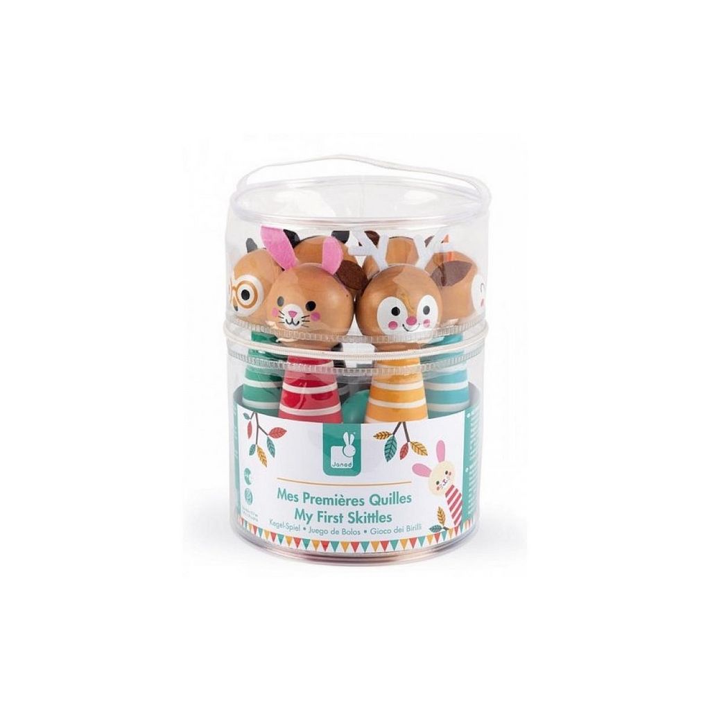 Découvrez le jeu mes premières quilles de Janod, un jeu de quilles en bois de merisier pour les enfants de 3 à 6 ans. Ce jeu comprend 6 quilles mascottes avec socle arrondi et oreilles en feutrine et 2 boules en bois colore?es. Un jeu d'extérieur original avec de mignons personnages qui les enfants