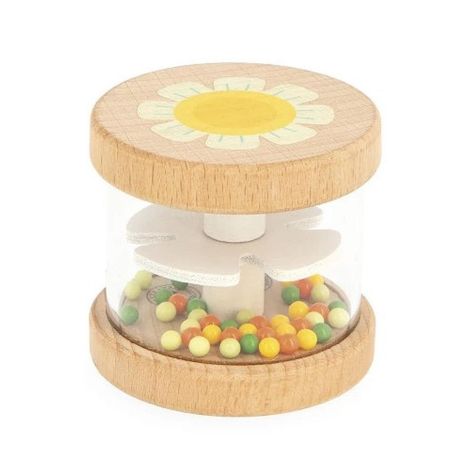 Un hochet plein de couleurs pour éveiller les sens ! Facile à attraper grâce à son format adapté aux petites mains, ce hochet est idéal pour les bébés dès 10 mois. Il suffit de le secouer pour entendre le doux cliquetis des petites billes colorées, un bruit apaisant qui introduit ainsi un premier contact avec les sons, stimulant l'ouïe de bébé. À l'intérieur, les billes multicolores glissent autour d'une hélice en bois, créant un mouvement fluide et captivant qui invite à l'exploration. Grâce à la paroi transparente, l'enfant peut suivre ce spectacle visuel et développer son acuité visuelle et sa coordination. Ce jouet d'éveil combine formes, couleurs et sons pour offrir une expérience sensorielle complète et ludique. Ce jouet instrument de musique fait partie de notre gamme Gioia, une invitation à l'éveil musical dans la joie, permettant aux tout-petits de découvrir le monde des sons de manière ludique et sous le signe du partage. Jouet en bois certifié FSC?. 5,7 x 5,7 x 5,2 cm