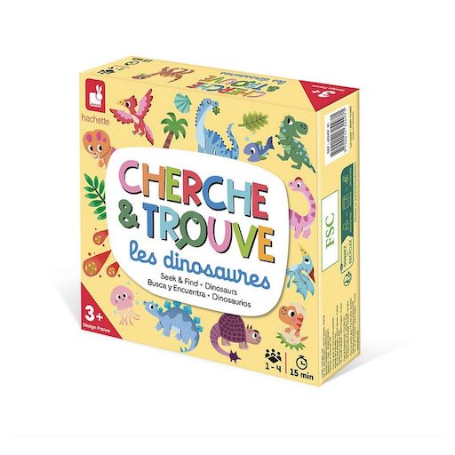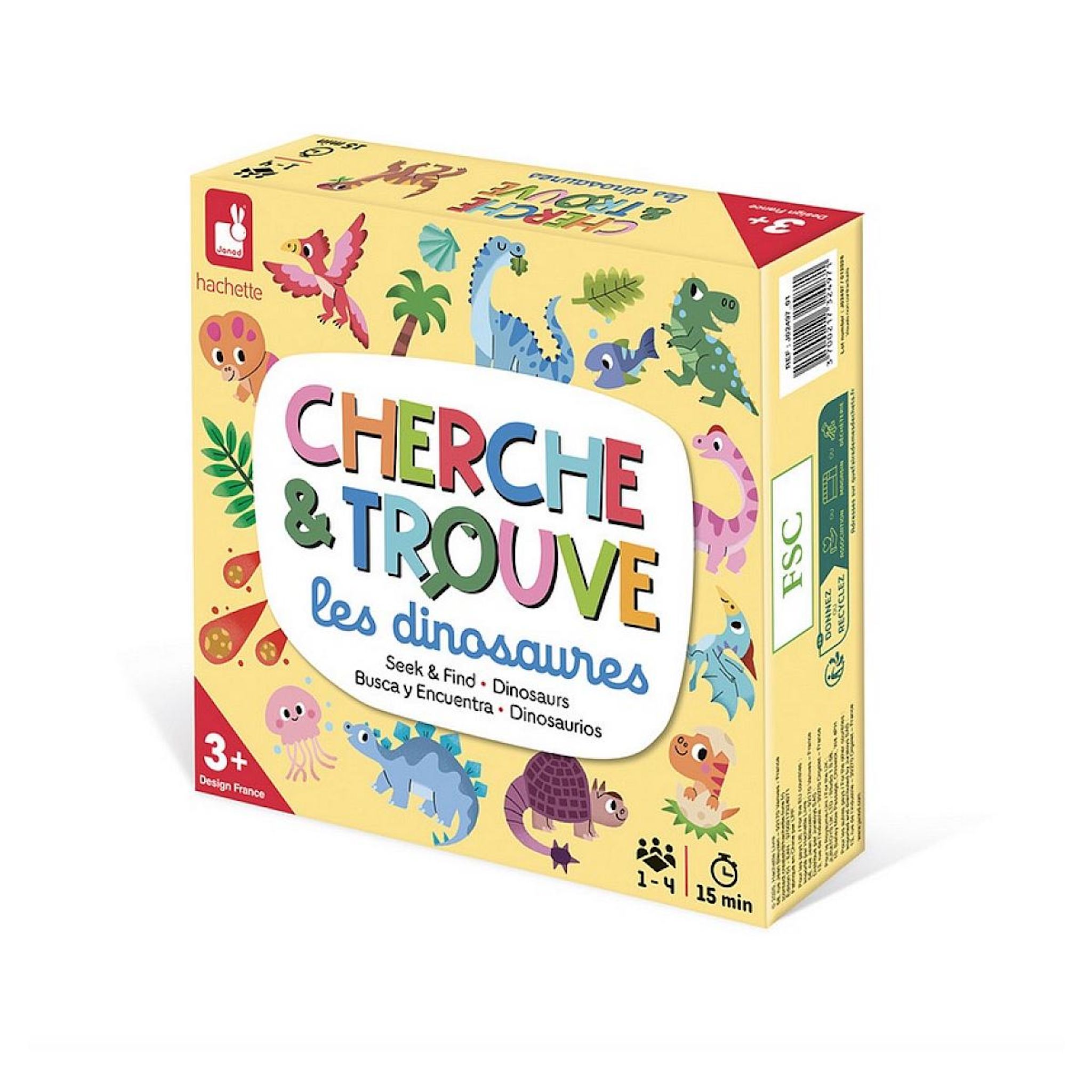 ? Le premier jeu d'observation des petits, dès 3 ans?. ? Plateau de jeu double-face en 4 parties?. ? Amusez-vous à retrouver tous les dinosaures !?. Une petite virée chez les dinos, ça vous dit ? Ce jeu de Cherche et Trouve est destiné aux enfants à partir de 3 ans. L'objectif : retrouver l'élément