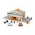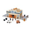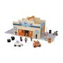 Garage en bois FSC, magnétique, livré avec 15 accessoires : 1 dépanneuse aimantée, 1 voiture, 4 personnages, 5 pneus, 1 scooter, 1 chien, 1 pompe à essence, 1 barrière, 1 horodateur. Dès 2 ans. Facile à ranger et à nettoyer.