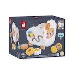 Qu'il est mignon ce mouton en bois à l'allure champêtre ! Fleurs, abeille, papillon? toute la nature est au rendez-vous ! Ce mouton multi-activités propose de nombreux jeux qui vont plaire aux enfants dès 12 mois. Sur le devant, niché au niveau de sa tête, se trouve un petit oiseau magnétique que l'enfant peut s'amuser à enlever et à remettre à sa guise. Sur un des côtés, on retrouve une boîte à forme où bébé peut y insérer 3 fleurs. Cette activité va demander un temps de réflexion aux tout-petits pour savoir comment placer ces formes. Le petit plus ? Chaque fleur possède une surface unique à explorer : un miroir, une partie à gratter et un plexi transparent pour voir la vie en orange ! Sur le côté opposé, on retrouve un petit labyrinthe avec une adorable abeille en bois. Le défi pour bébé ? La faire glisser le long de son chemin ! Sur le dos du mouton, on peut y visser un papillon, permettant aux petits de faire leurs premières expériences avec la rotation. Juste à côté, un petit emplacement est prévu pour accueillir un hochet à grelot : bébé pourra le saisir, le secouer et écouter son doux tintement. C'est parfait pour stimuler l'ouïe dès le plus jeune âge. Malin, les 6 accessoires qui composent ce jouet peuvent aussi se ranger à l'intérieur ! Ce beau jouet d'éveil est fabriqué en bois FSC?. Infos produit Dimensions 17,5 x 17,5 x 18,8 cm Matière Bois certifié FSC