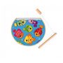 Contenu: 1 support en bois en forme de bocal (27 x 22 cm), 6 poissons en bois aux formes différentes (L. entre 7,5 cm et 10 cm), 1 canne à pêche avec un gros aimant.