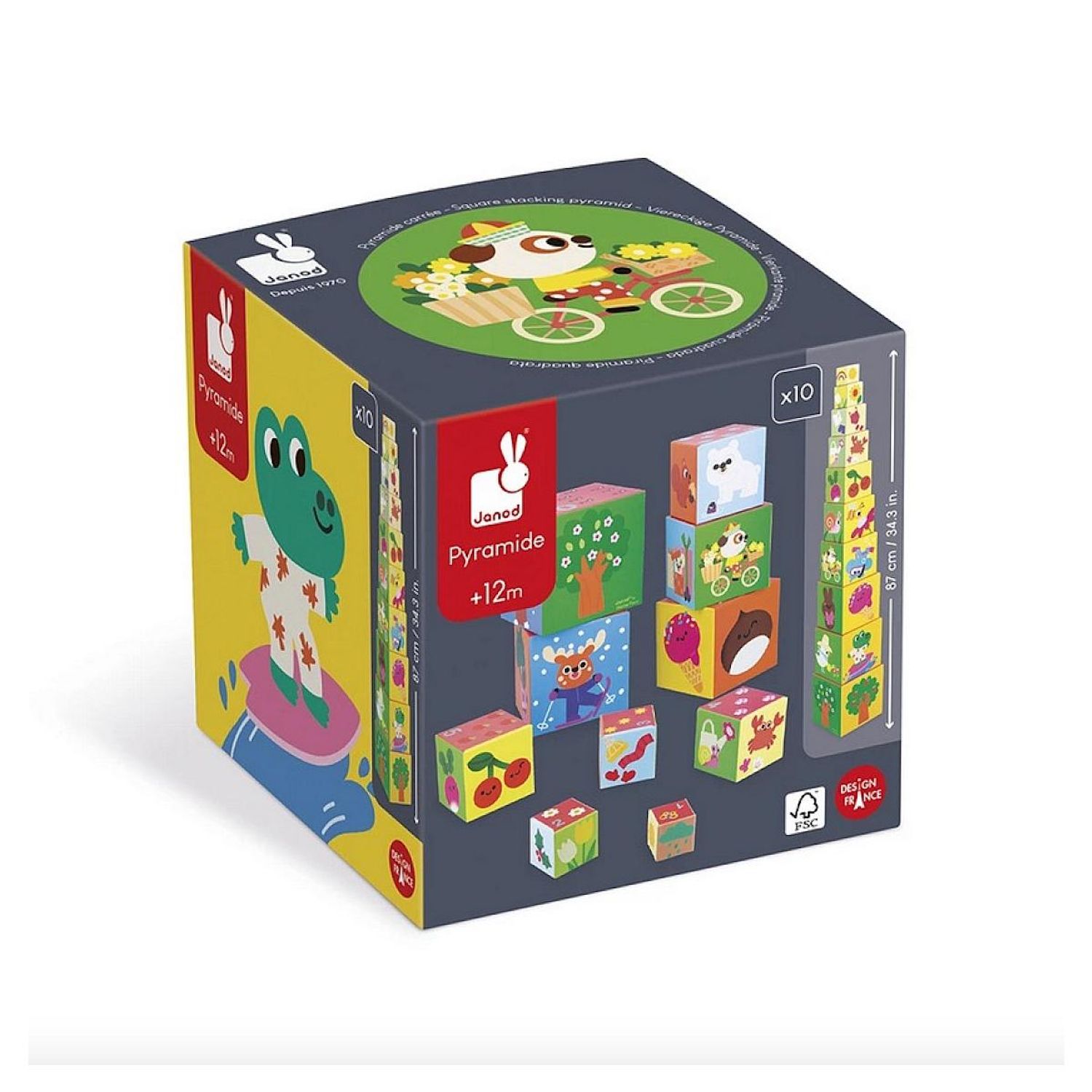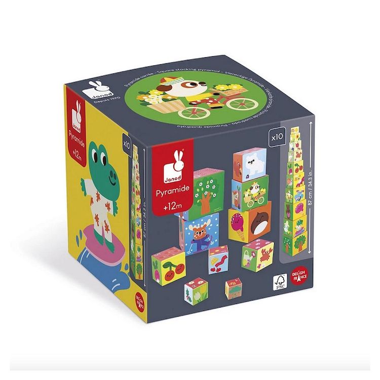 ? 10 cubes en carton à empiler pour découvrir les 4 saisons. ? Illustrations douces et colorées pour éveiller la curiosité des tout-petits. ? Un jeu évolutif : chiffres et éléments à compter pour s'initier au calcul. On empile, on empile.. et patatras on fait tout tomber ! De quoi bien amuser les enfants ! Voyagez à travers les 4 saisons avec cette jolie pyramide de cubes en carton ! Conçue pour les enfants à partir de 12 mois, elle est composée de 10 cubes à empiler pour découvrir le printemps, l'été, l'automne et l'hiver. Le but du jeu ? Retrouver ce qui appartient à chaque saison : animaux, plantes, accessoires, fruits et légumes? En hiver, les ours polaires pointent le bout de leur nez, tandis qu'en automne, les écureuils font leurs provisions ! Les illustrations douces et attendrissantes éveillent la curiosité des bambins et donnent envie de jouer encore et encore. Pour bien réussir la pyramide, il faut bien observer les faces des cubes et associer les bonnes saisons entre elles. Mais encore faut-il réussir à faire tenir la pyramide ! Un jeu amusant qui développe la motricité fine et la coordination oeil-main. Le petit plus de cette pyramide : elle est évolutive ! Sur le dessus de chaque cube figurent également un chiffre et son équivalent en éléments à compter : c'est parfait pour se familiariser progressivement avec le calcul. Ce jeu d'empilement est composé de carton certifié FSC?. Infos produit. Dimensions. 13,5 x 13,5 x 87 cm. Matière. Carton