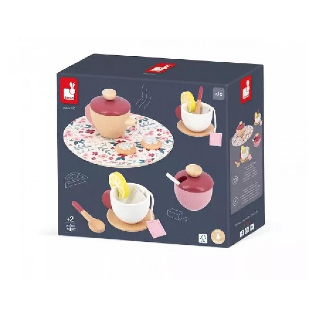 Pour imiter les plus grands à l'heure du thé, à partir de 2 ans. Ensemble de 16 pièces en bois et feutrine au style fleuri. Les petits s'amusent en cuisine à l'heure du goûter !
