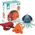 3 JOUETS DE BAIN LUDIQUES : Le homard, le poisson clown et le calamar aux couleurs vives deviennent des peluches de bain pour aider votre enfant à apprendre à se laver en s'imaginant de belles aventures. Idéal pour gagner en autonomie en s'amusant. SIMPLES À UTILISER : Comme des fleurs de bain, ces 3 barboteurs moussent facilement entre les petites mains. Il suffit de mouiller l'éponge, d'ajouter un peu de savon et de se frotter avec pour se laver. Prendre le bain n'a jamais été aussi amusant ! PRATIQUES : Ces 3 animaux marins sont de taille adaptée aux petites mains et occupent votre enfant pendant le bain. Grâce à une attache sur le dessus de la tête, emportez ces jeux de bain n'importe où et accrochez-les après le bain pour les faire sécher. CARACTÉRISTIQUES : Comprend 3 barboteurs en tissu (polyester) et rembourrés de mousse. À essorer et laisser sécher après chaque utilisation, comme des fleurs de douche. Recommandés pour les enfants de 10 mois à 3 ans. Dimensions : 29 x 20 x 25 cm (LxlxH). LE POUVOIR DU JEU : Avec des collections audacieuses et innovantes, Janod accompagne les enfants dans une belle aventure : grandir ! De beaux jouets travaillés dans le moindre détail pour apprendre en s'amusant, explorer le monde, rêver et partager.